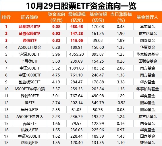 数据显示,头部基金公司旗下部分ETF净流入步伐持续。
