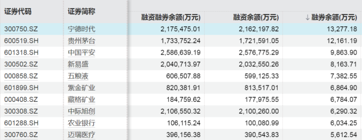 Wind数据显示,截至2025年12月31日,A股市场融券余额居前的股票分别为宁德时代、贵州茅台、中国平安,融券余额分别为1.33亿元、1.22亿元、0.99亿元。