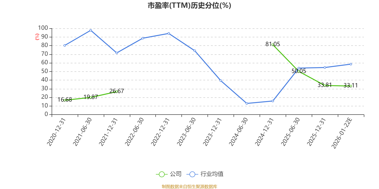 以本次披露业绩预告均值计算,公司近年市盈率(TTM)图如下所示: